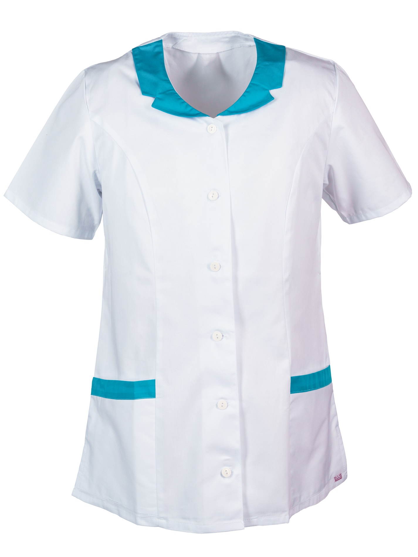 Dámská halena pricesového střihu s barevným šikmým proužkem na límci a kapsách, výstřih do tvaru V, zapínání na knoflíky,